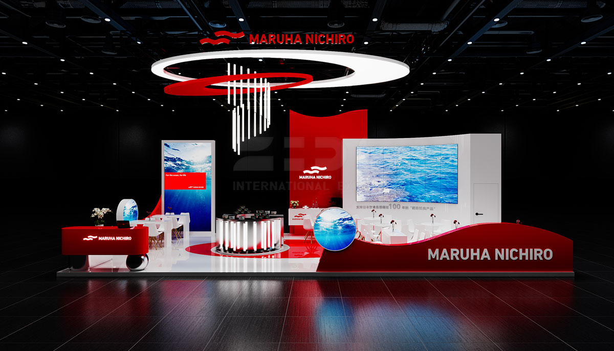 2023年中國(guó)(青島)漁業(yè)展覽會(huì)(SeaFareChina)已于2023年10月25日~10月27日在紅島國(guó)際會(huì)議展覽中心舉行,澤迪展覽首次攜手“maruha nichiro"亮相該展會(huì),本次maruha nichiro展臺(tái)占地面積為70㎡,簡(jiǎn)約統(tǒng)一風(fēng),整體材質(zhì):木結(jié)構(gòu)+乳膠漆+烤漆柜子,材料包括金屬發(fā)光字 軟膜繃布 發(fā)光燈光 燈箱 十公分地臺(tái) 三聚氫案板金屬包邊 雪弗板字 寫真等。本次項(xiàng)目澤迪展覽團(tuán)隊(duì)“設(shè)計(jì)-搭建-撤展”全程跟進(jìn),秉持著始于創(chuàng)新,精于品質(zhì)的態(tài)度去完成每一個(gè)作品,為maruha nichiro品牌企業(yè)提供一個(gè)專業(yè)性展示平臺(tái),傳遞品牌內(nèi)涵樹立企業(yè)標(biāo)識(shí)形象。