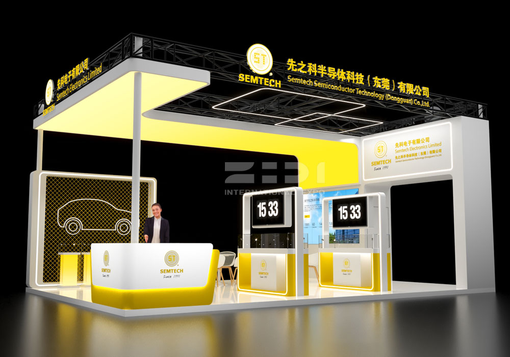 本次”先之科"占地面積為54平方米,以黃色為主色調(diào),流暢的線條與材質(zhì)工藝設(shè)計,合理的觀眾流動線,科技感十足的展區(qū)與燈帶的巧妙運用使參觀者更好體驗。